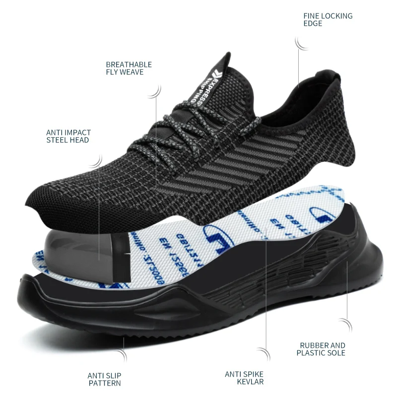 High Quality Rubber Bottom Work Shoes Lightweight Industrial Steel Toe Safety Shoes